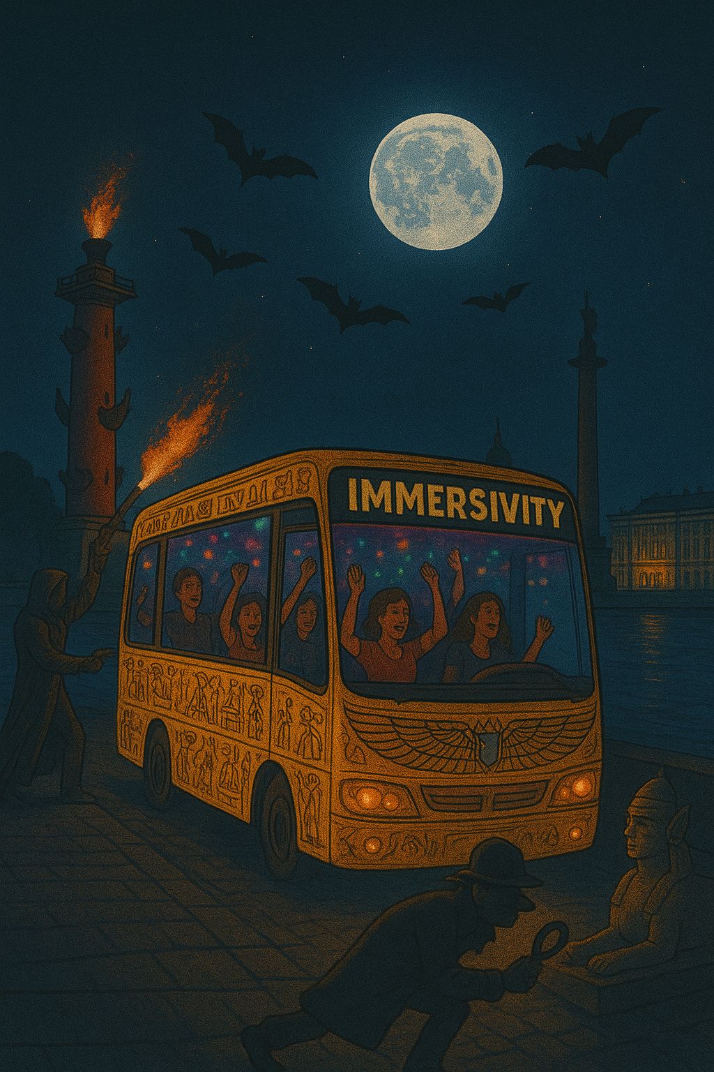 Иммерсивный квест на патибасе "BestBusQuest" – авторская программа ПЦ Immersivity для компании до 20-ти человек. Это отличный вариант для тех, кто не хочет сидеть на одном месте и желает за одно мероприятие посетить сразу несколько интересных локаций с разными активностями. Как правило «накал страстей» идёт по нарастанию: от весёлого и лёгкого старта до режима Hard и шок-начинки в финале – хотя всё это формируется на усмотрение заказчика и легко трансформируется. Формат сочетает в себе различные интерактивы, иммерсивные погружения с профессиональными театральными актёрами, захватывающие дух приключения, диско-фуршет на колёсах и отрыв в аутентичном лофте. Параллельно с авторскими активностями на заранее подготовленных локациях этот квест знакомит участников с классикой Петербурга: его неповторимым духом, дворами-колодцами, потрясающей архитектурой, величественными памятниками, мистическими закоулками, символами и знаками забытой царской эпохи, которые мало кто может заметить самостоятельно, открывает мрачные тайны и тёмную сторону града Петра. Тематика, как и начинка могут быть абсолютно любыми – мы всегда собираем концепт праздника из пожеланий заказчика и, конечно, можем порекомендовать лучшие, проверенные временем решения. Очень хорошо данный квест подходит для нестандартного сюрприза - празднования дня рождения (когда виновник торжества даже не подозревает, что его будет ждать). Также программа отлично подойдёт компаниям с небольшим количеством сотрудников, на мальчишник или девичник, или просто компании друзей, которые хотят незабываемо и нестандартно провести время. А для туристов, особенно для групп, которые приехали в наш величественный город на какие-то деловые мероприятия и желают познакомиться с несколькими достопримечательностями Петербурга в нестандартном ярком формате – это просто супер решение.